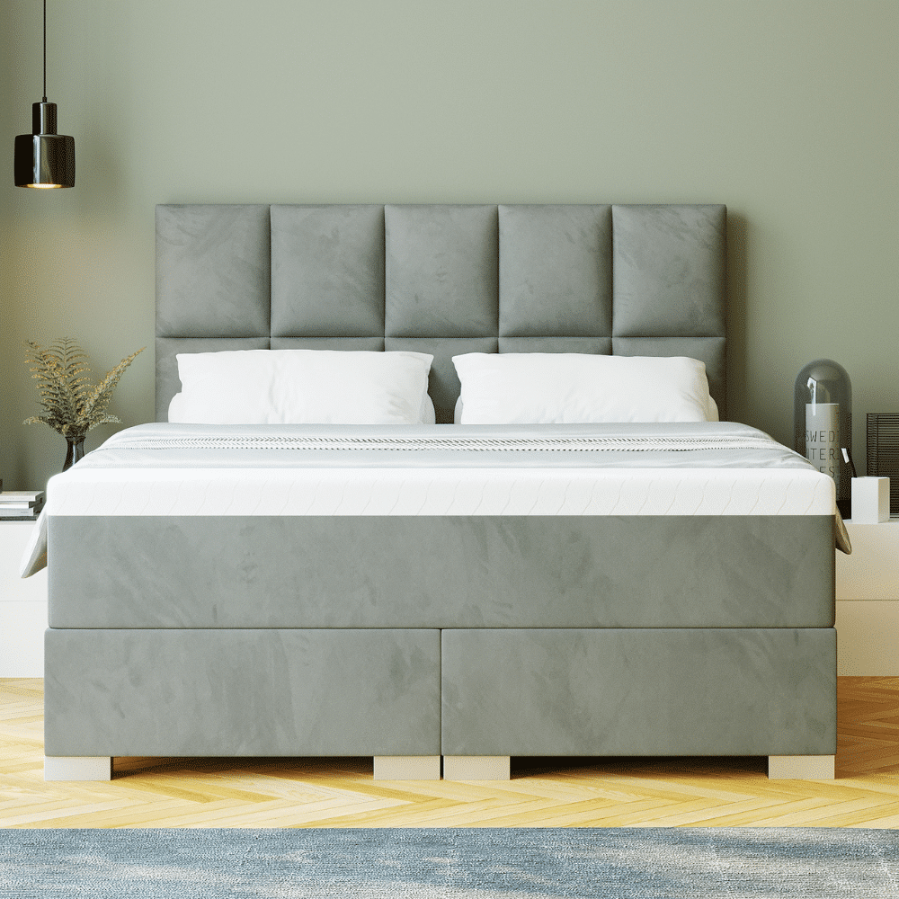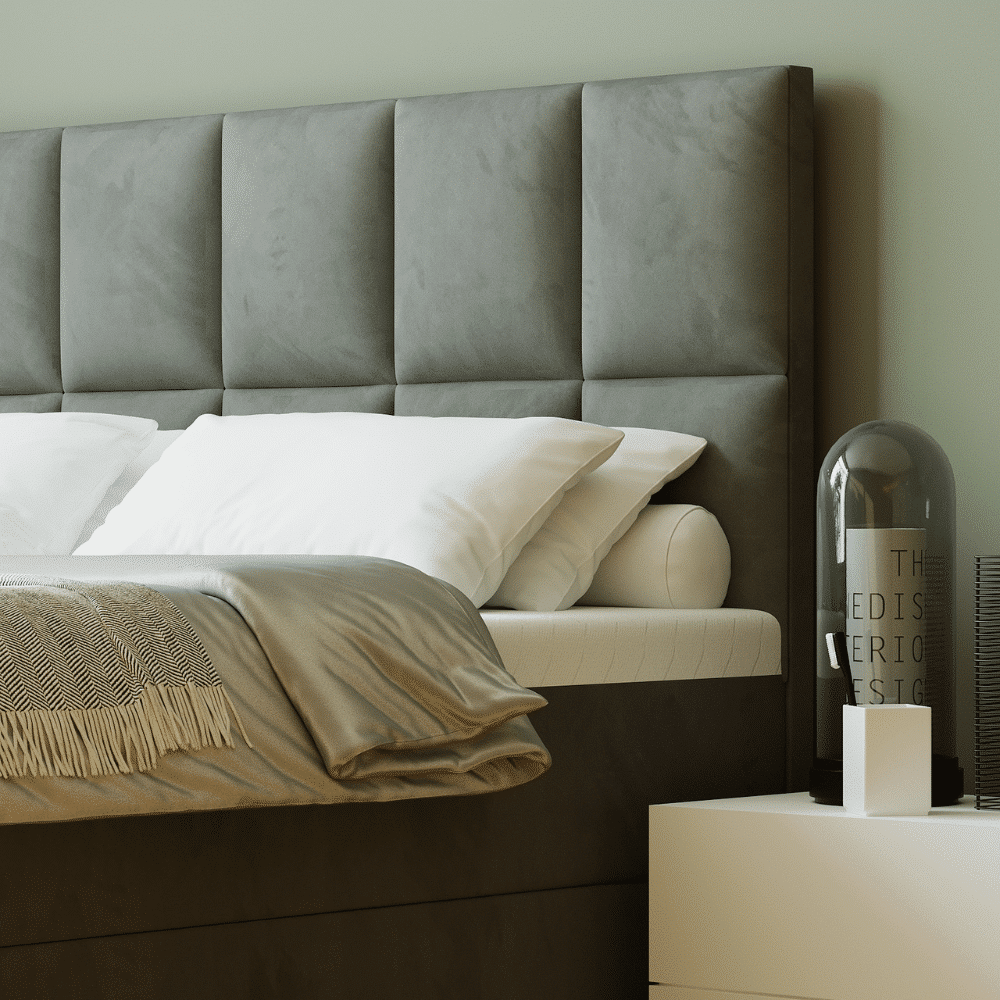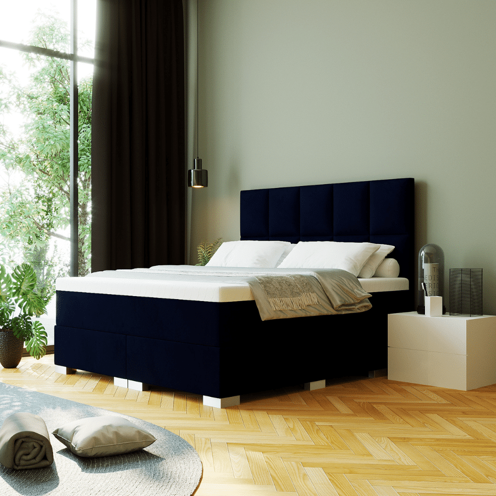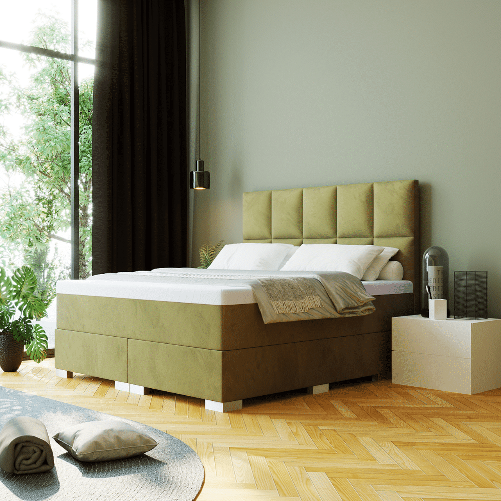 De boxspring kenmerkt zich door een hoofdbord voorzien van 10 vlakken geïnspireerd vanuit de Eric Kuster Stijl. Het hoofdbord is 140 cm hoog en is even breed als het bed. In combinatie met de velvet stof geef je de BIG Mondriaan een moderne en trendy uitstraling in de slaapkamer. Binnen onze webshop heb je de keuze uit een standaard aantal kleuren. Heb je niet de juiste kleur gevonden? Kom dan langs bij ons in de winkel, want we hebben nog veel andere kleuren!