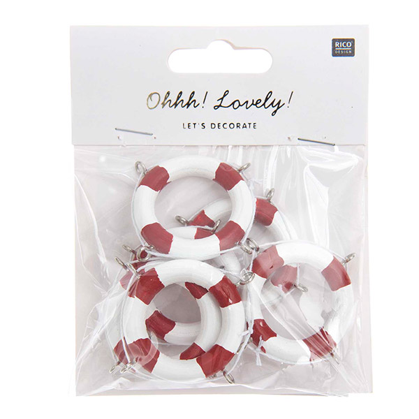 Een zakje met deco reddingsringen. De reddingsringen kun je gebruiken op je verteltafel of thematafel, maar je kunt ze ook op een tekening/ knutselwerkje plakken.
