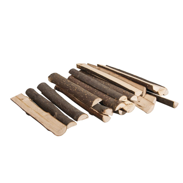 Halve houten stokjes met een lengte van ongeveer 10-12 cm en een diameter van 2,5 cm.