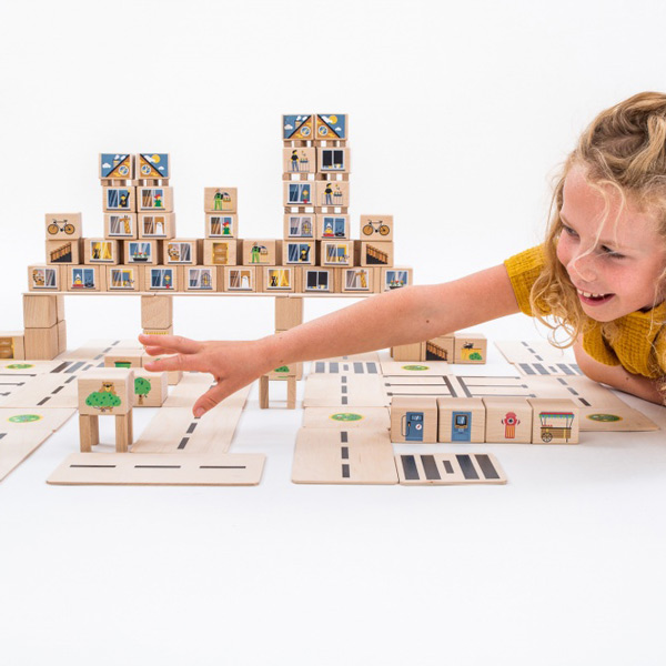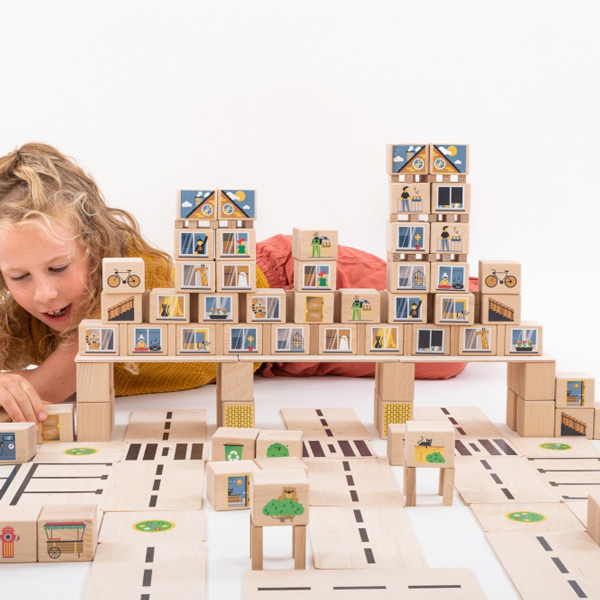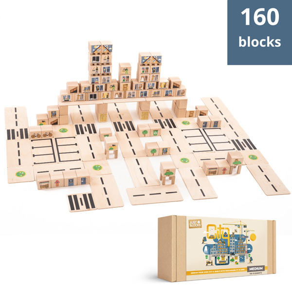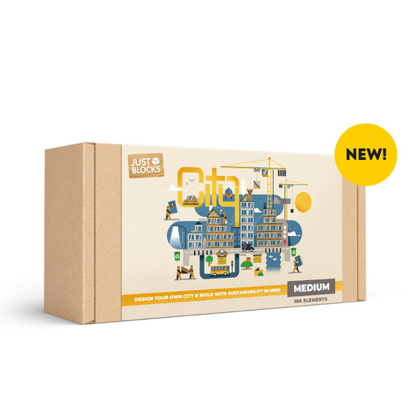 Just Blocks is uitgebreid met de CITY sets! Deze blokken hebben hetzelfde formaat als de originele Just Blocks, maar zijn bedrukt met fantasierijke afbeeldingen en veelzijdig toepasbare prints en kunnen gecombineerd worden met alle andere Just Blocks sets en allerlei ander klein spelmateriaal.
