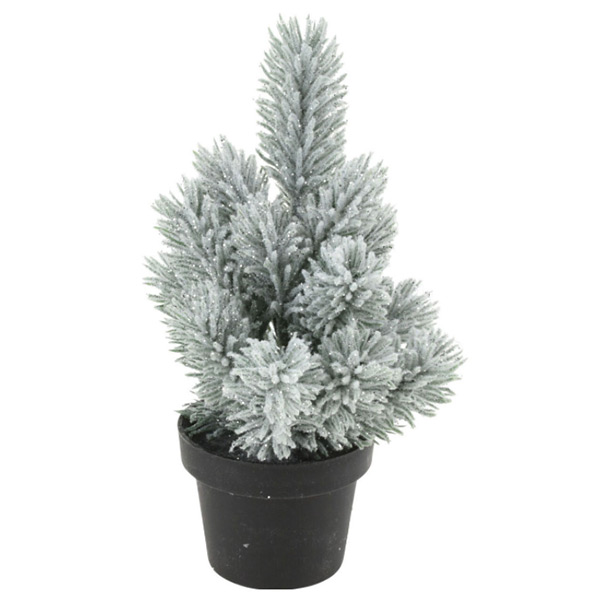 Kerstboompje in pot, 22 centimeter hoog en ca. 13 centimter breed.