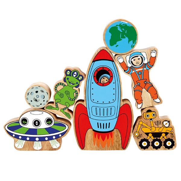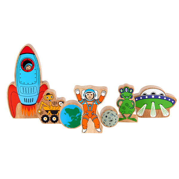 Mooie, stevige houten speelset In de ruimte, perfect voor kleine handjes.