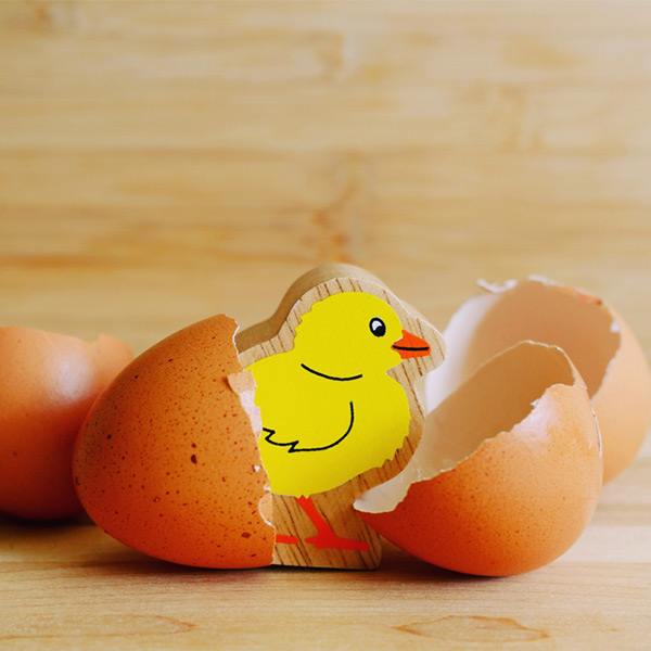 Een stevige houten kuikentje, perfect voor kleine handjes.