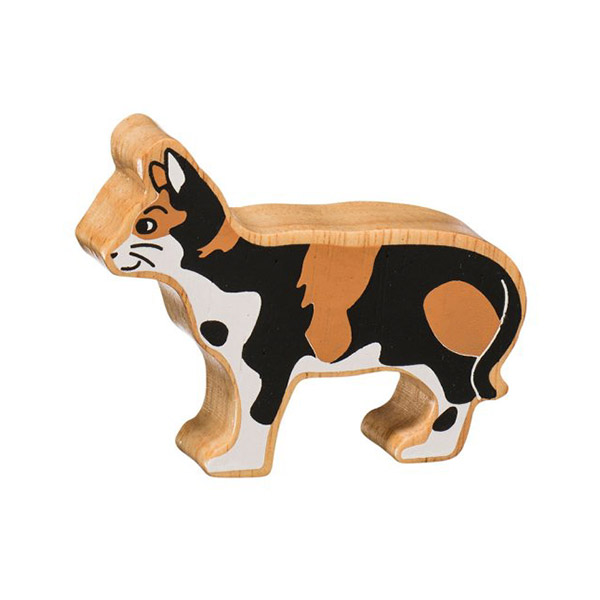 Een stevige houten poes, perfect voor kleine handjes.