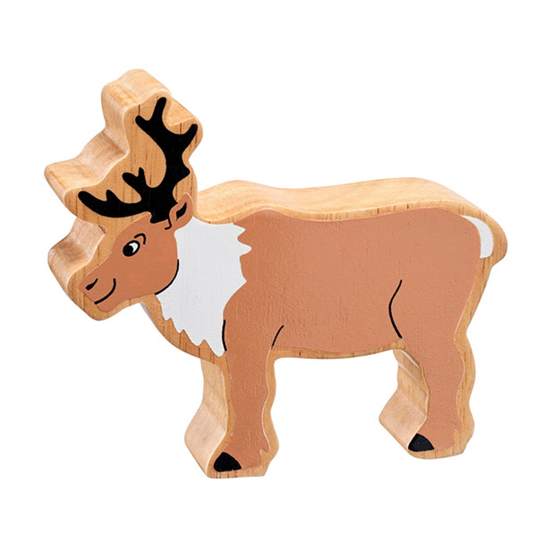 Een stevige houten rendier, perfect voor kleine handjes.