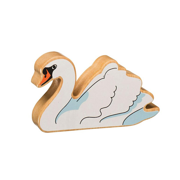 Een stevige houten zwaan, perfect voor kleine handjes.