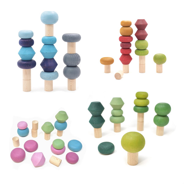 Set met stapelbare boompjes bestaande uit 4x 18 delen van hoge kwaliteit beukenhout. Kinderen bouwen hun eigen bos of bedenken allerlei andere objecten en figuren met de stapelbare blokjes in verschillende vormen en kleuren. Een mooi product voor open spel, balanceren en de fijne motoriek. Deze boompjes laten zich uitstekend combineren met de huisjes, poppetjes en voertuigen uit de Lubulona speelsets. Naast de Stapelbomen Alle Seizoenen Set zijn er ook losse sets voor Herfst, Lente Winter en Zomer. Deze Alle Seizoenen Set is superhandig voor gebruik in school of kinderopvang.