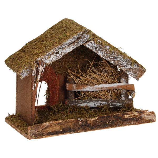 Houten kerststal gemaakt van natuurlijke producten.