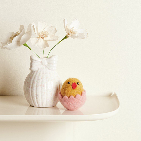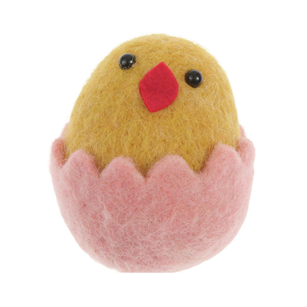 Handgevilt kuikentje in een ei van 100% wol. Ideaal als lente- of paasdecoratie.